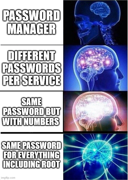 I cannot stress this enough. Get a password manager. Generate random passwords. Your “system admin special password you use for everything” is not a security strategy.